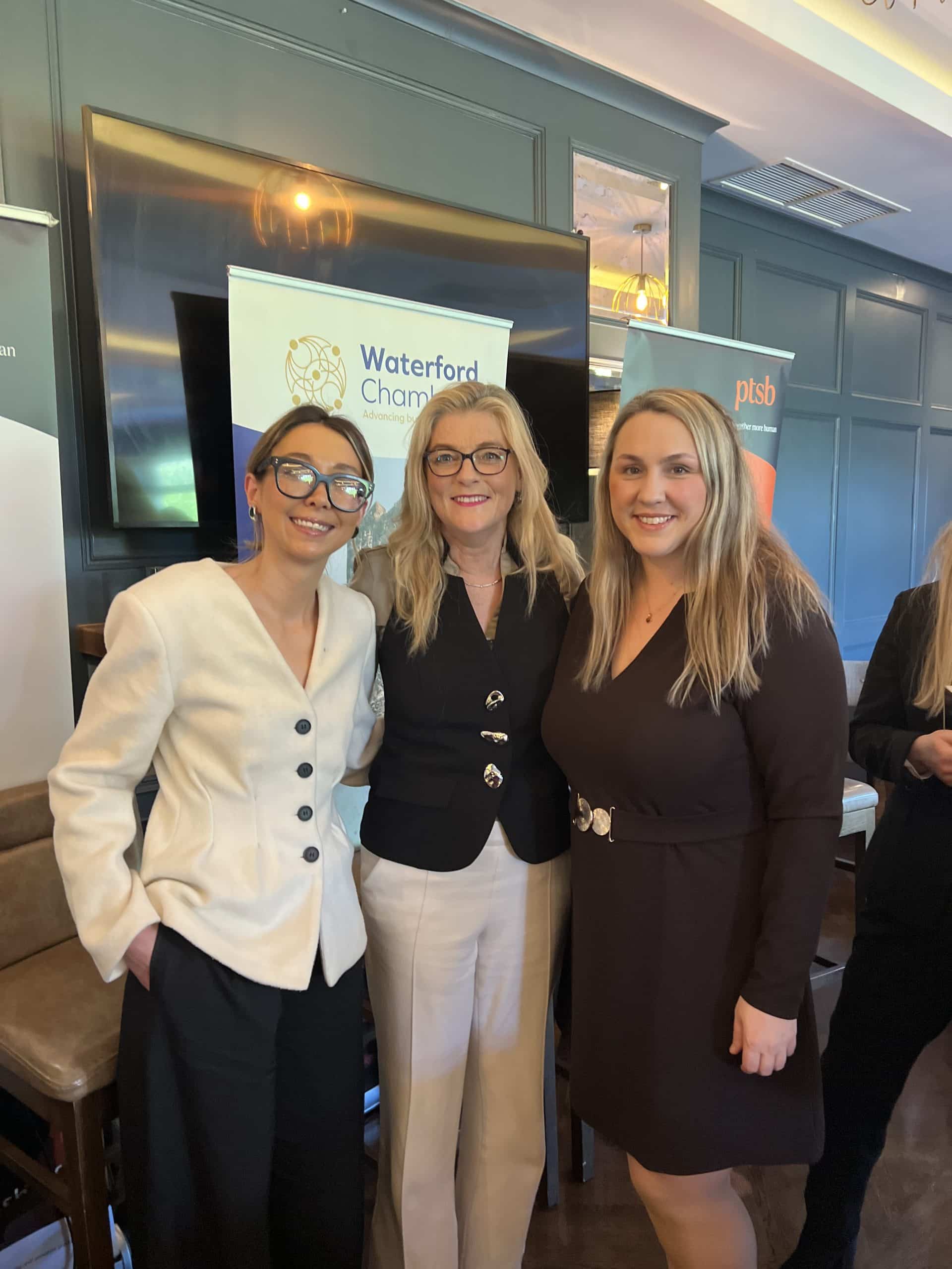 Amazing speakers including Mary McEvoy, Regional Director, IDA Ireland; Cynthia Ni Mhurchu MEP; Eadaoin Carrick, President, Waterford Chamber and Executive Director of The Cantec Group; Moira Walsh, Offshore Wind Asset Development, ESB Wind, Fiona McMahon, Chief Risk Officer, PTSB with Lynda Lawton the fabulous MC.